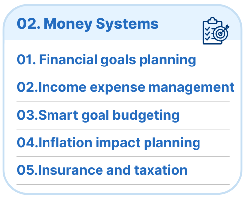 The handbook covers essential financial concepts including Money & Banking, Financial Planning, Investments, and Loans & Credits. Your child will learn about budgeting, digital payments, mutual funds, compound interest, insurance, and how to avoid debt—all explained with real-world examples and interactive tasks.