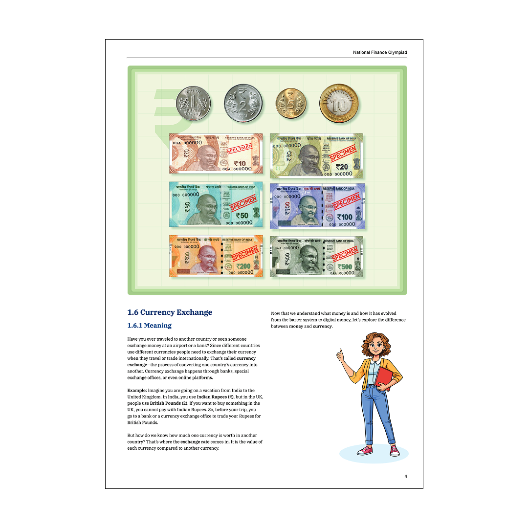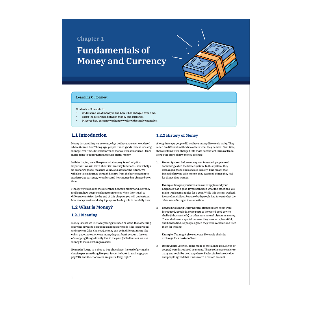 Yes, the handbook is fully aligned with the National Education Policy (NEP) 2020 and designed specifically for Indian students. All examples, case studies, and financial scenarios are relevant to the Indian context, covering topics like UPI, Indian banking, GST, and more.